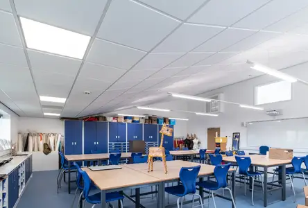 Art rooms require a higher illumination level, low-glare luminaires and often CRI 90 is specified, particularly for higher education establishments to provide more accurate colour rendition.