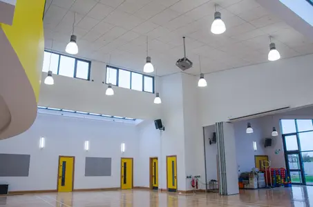 At primary schools, sport is often just one activity in a multi-function space used for daily assembly, concerts and presentations, so the lighting needs are less onerous.