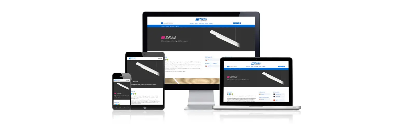 The new Thorlux website is designed to work seamlessly across all computer devices; the design of the site responds and changes to fit any screen size enabling access clearly and concisely on a phone, tablet, laptop and desktop PC.
