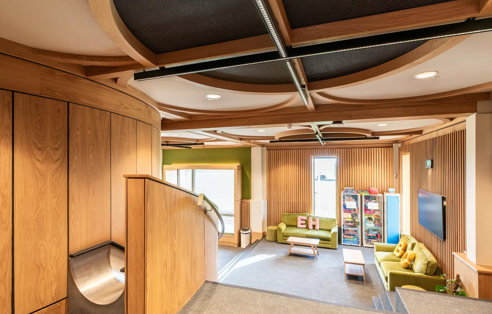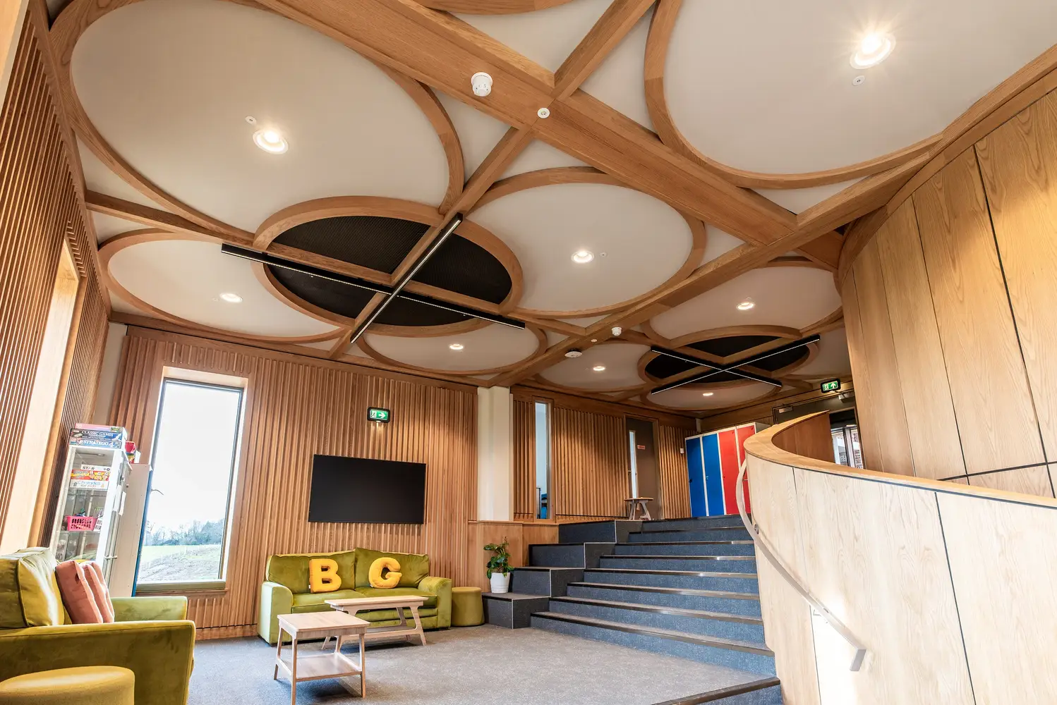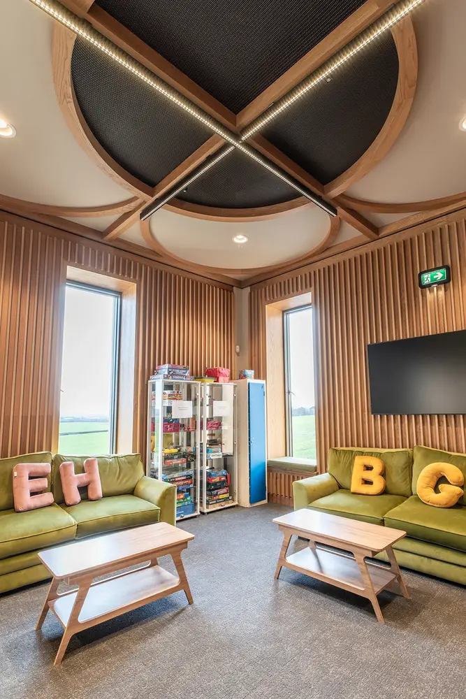 Earle House, Bilton Grange’s new, state-of-the-art boarding house, opened in August 2025, with facilities including 80 beds, a social hub, dining hall and a unique indoor helter-skelter slide. The building has been lit throughout with Thorlux luminaires, including the Flexbar linear luminaire.