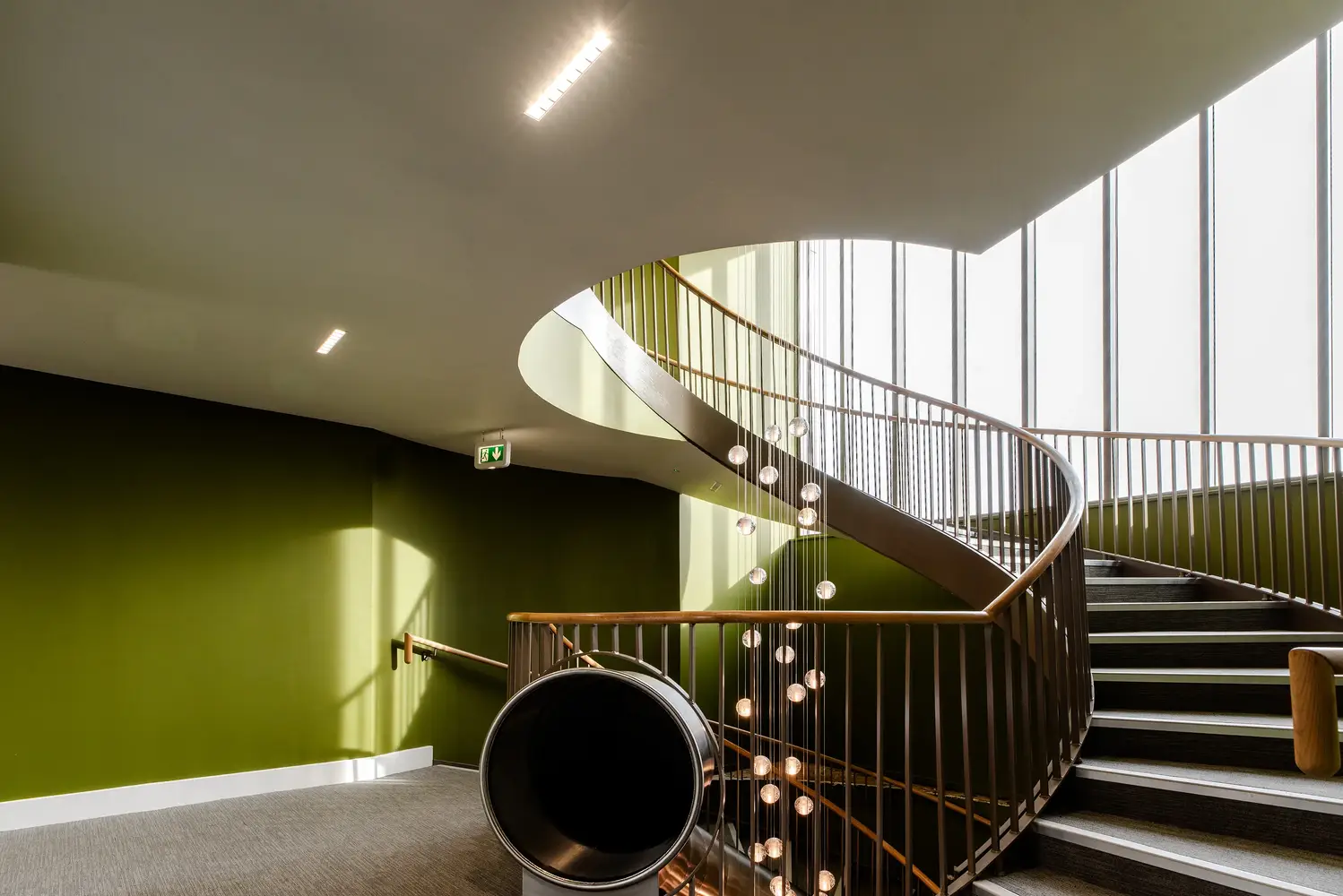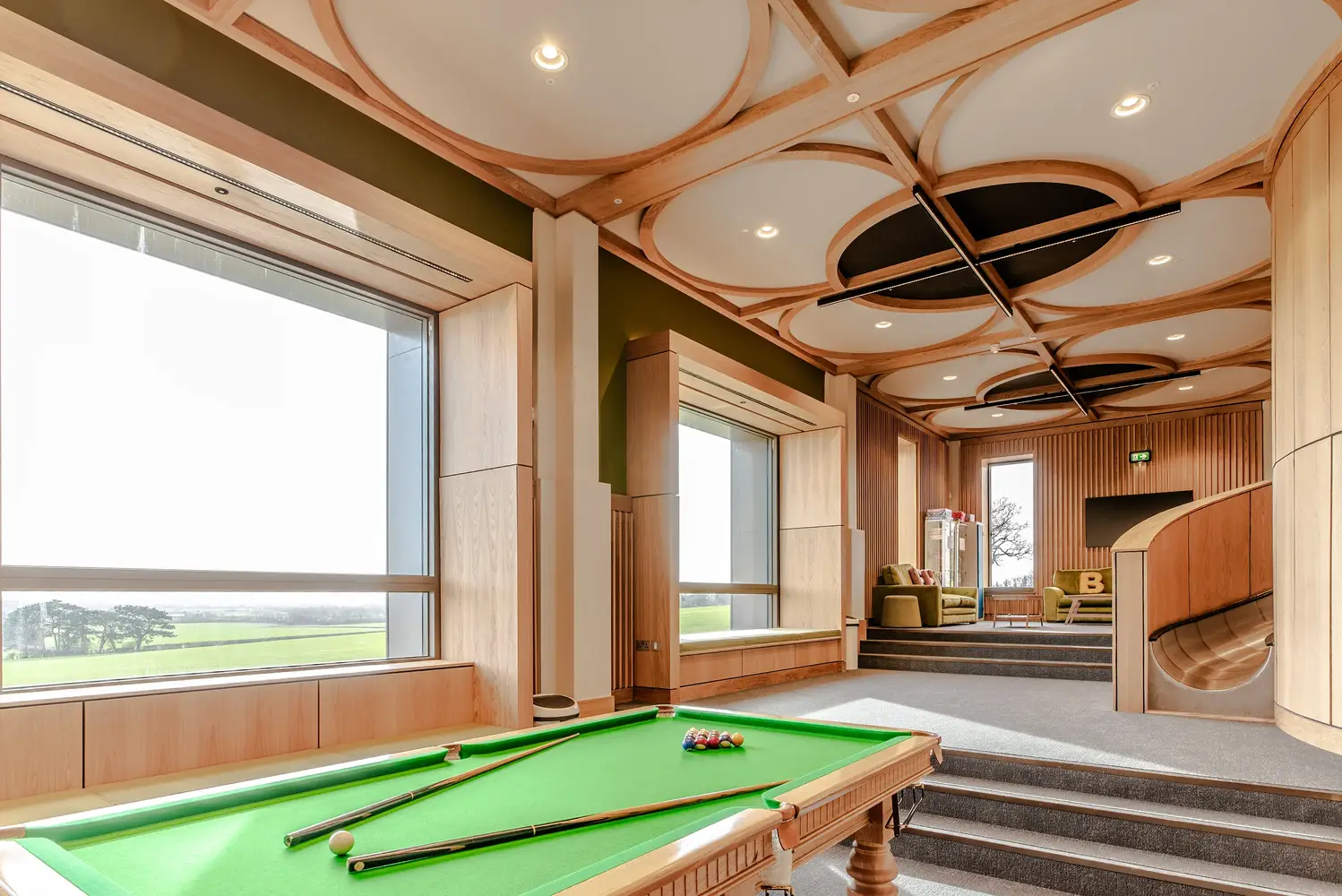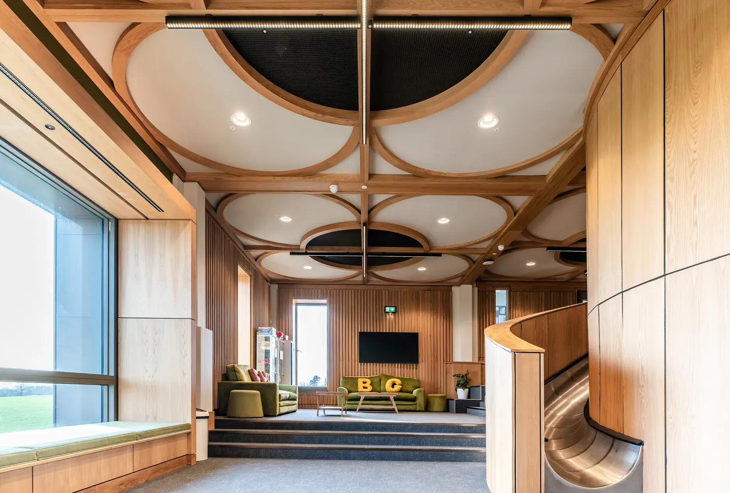 Earle House, Bilton Grange’s new, state-of-the-art boarding house, opened in August 2025, with facilities including 80 beds, a social hub, dining hall and a unique indoor helter-skelter slide. The building has been lit throughout with Thorlux luminaires, including the Flexbar linear luminaire.