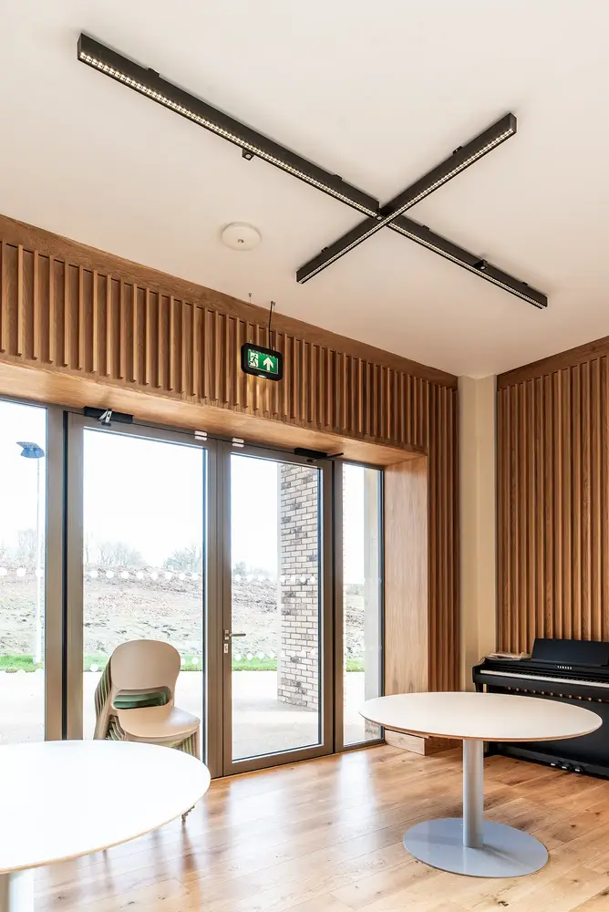 The elegant, slimline Flexbar has been designed to provide comfortable, low-glare illumination with optimised 160.5 LL/CW efficiencies. It has proven ideal for the communal spaces at Earle House, helping create a welcoming, comfortable living environment for pupils.