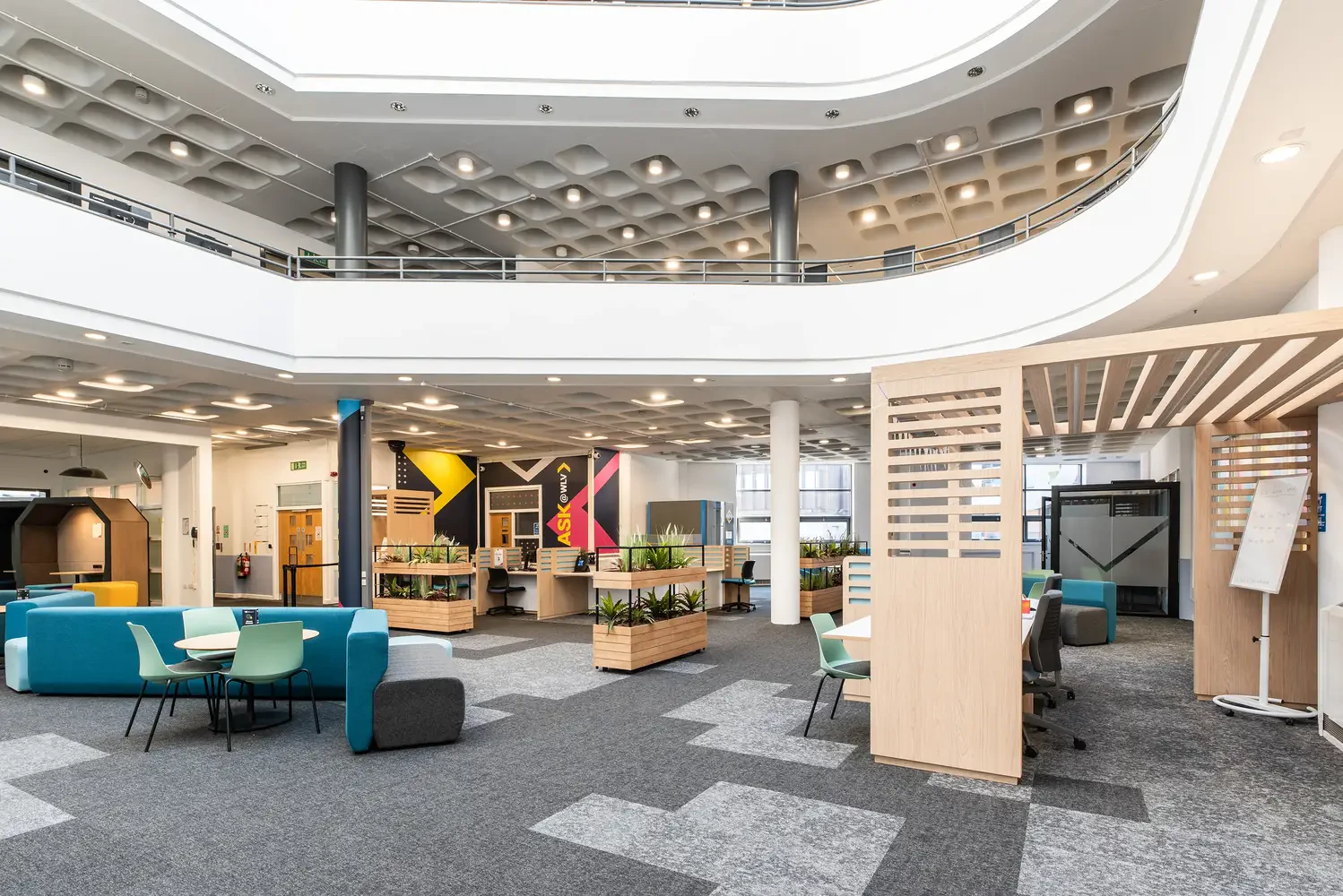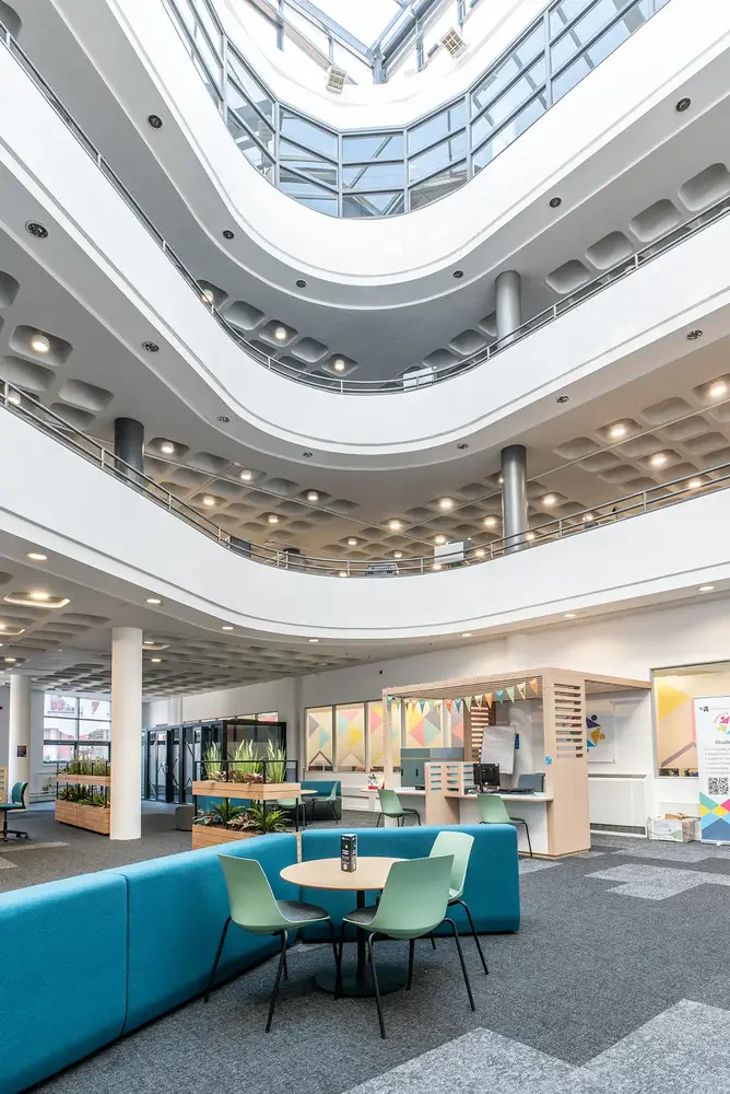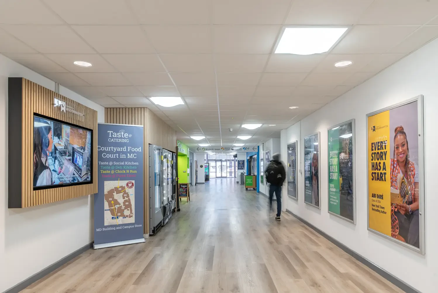 In recent years, the University has invested £125 million in improvements across its various sites. This has included a £1.6 million refurbishment of its largest library facility, the Harrison Library, located on the main campus in the city centre. Besides improving study areas and adding learning zones and meeting rooms, the library has upgraded from outdated, inefficient fluorescent luminaires to an energy-saving, SmartScan-controlled Thorlux LED lighting system.