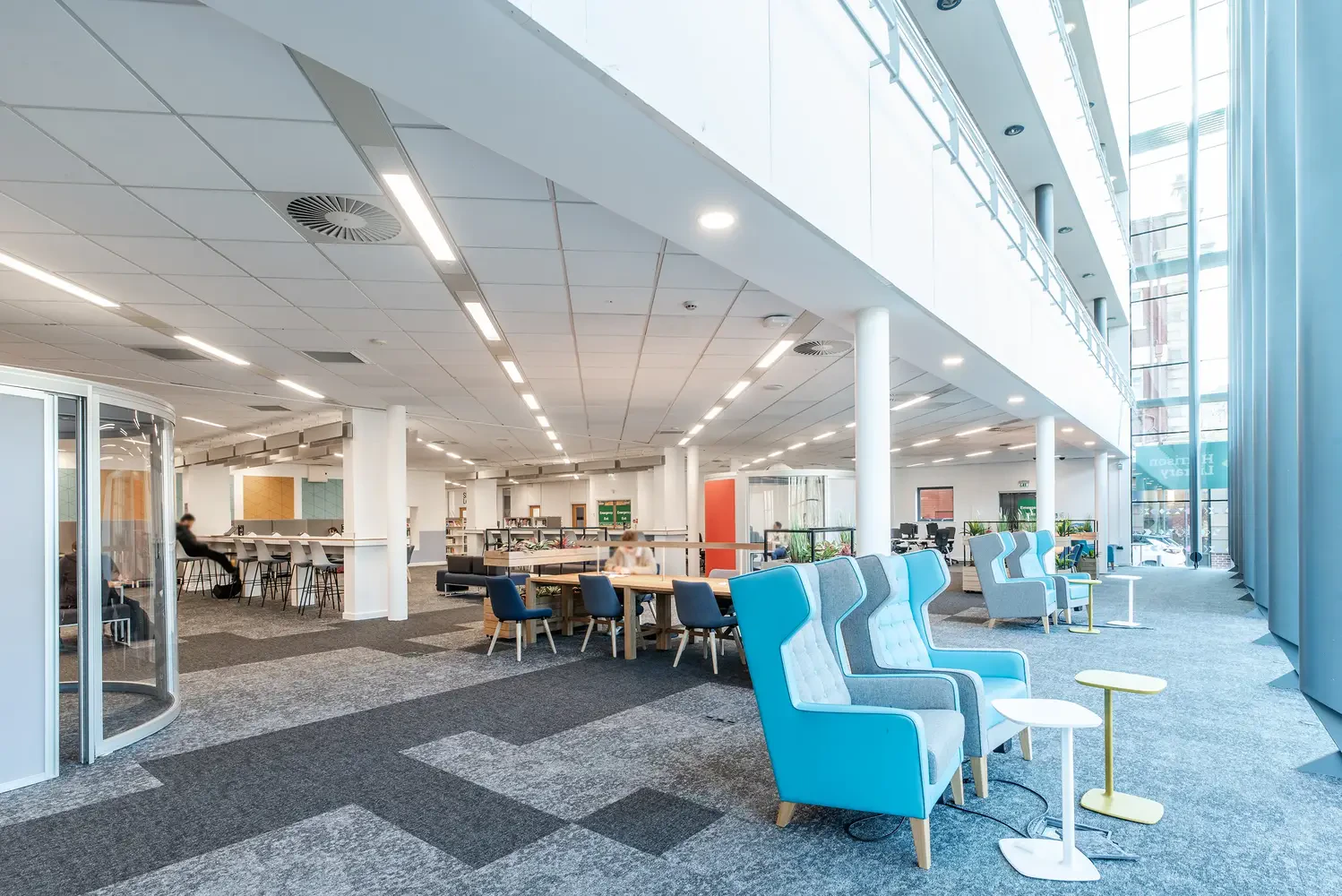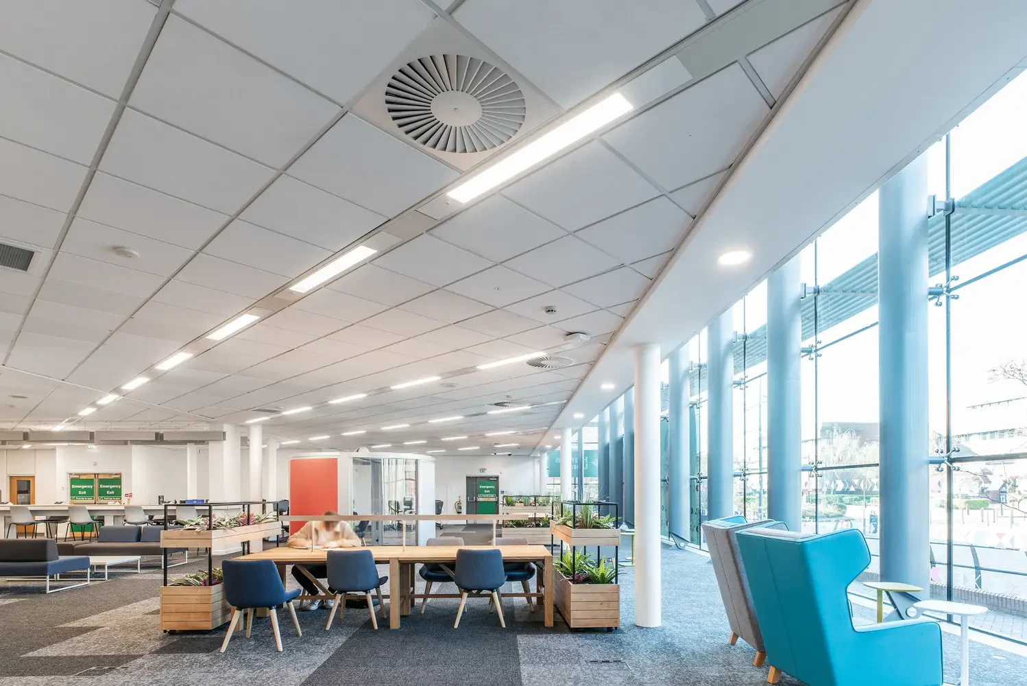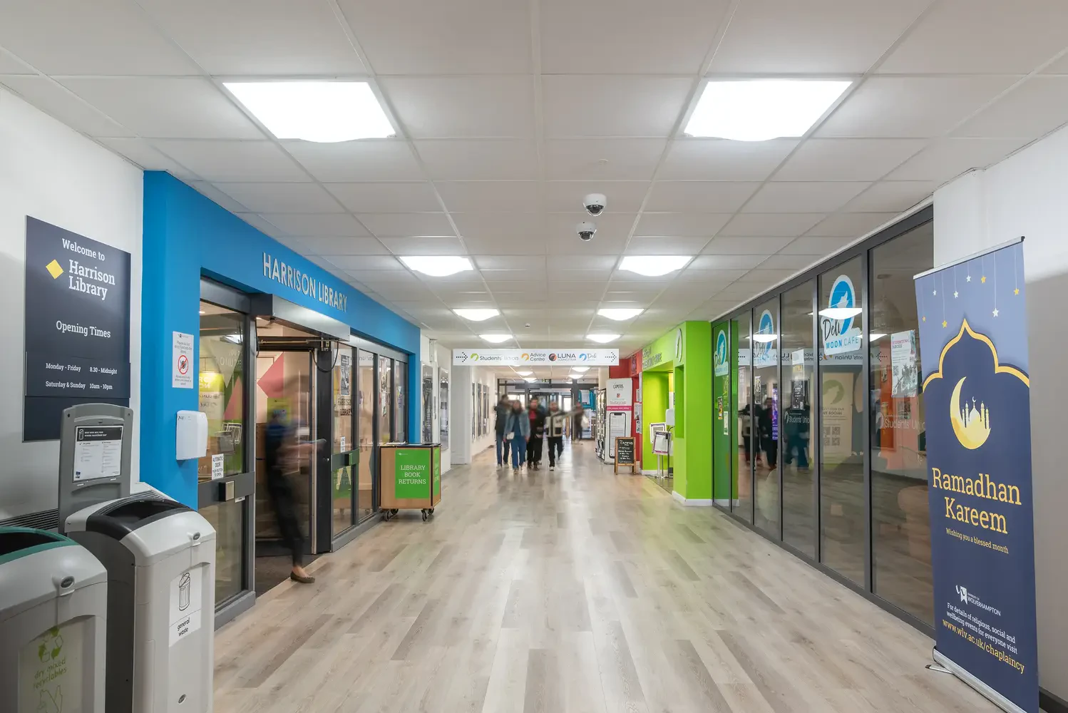 The new system has reduced lighting energy consumption at the Harrison Library by 84% annually, saving more than £63,500 and reducing CO₂e emissions by over forty-five tonnes each year.