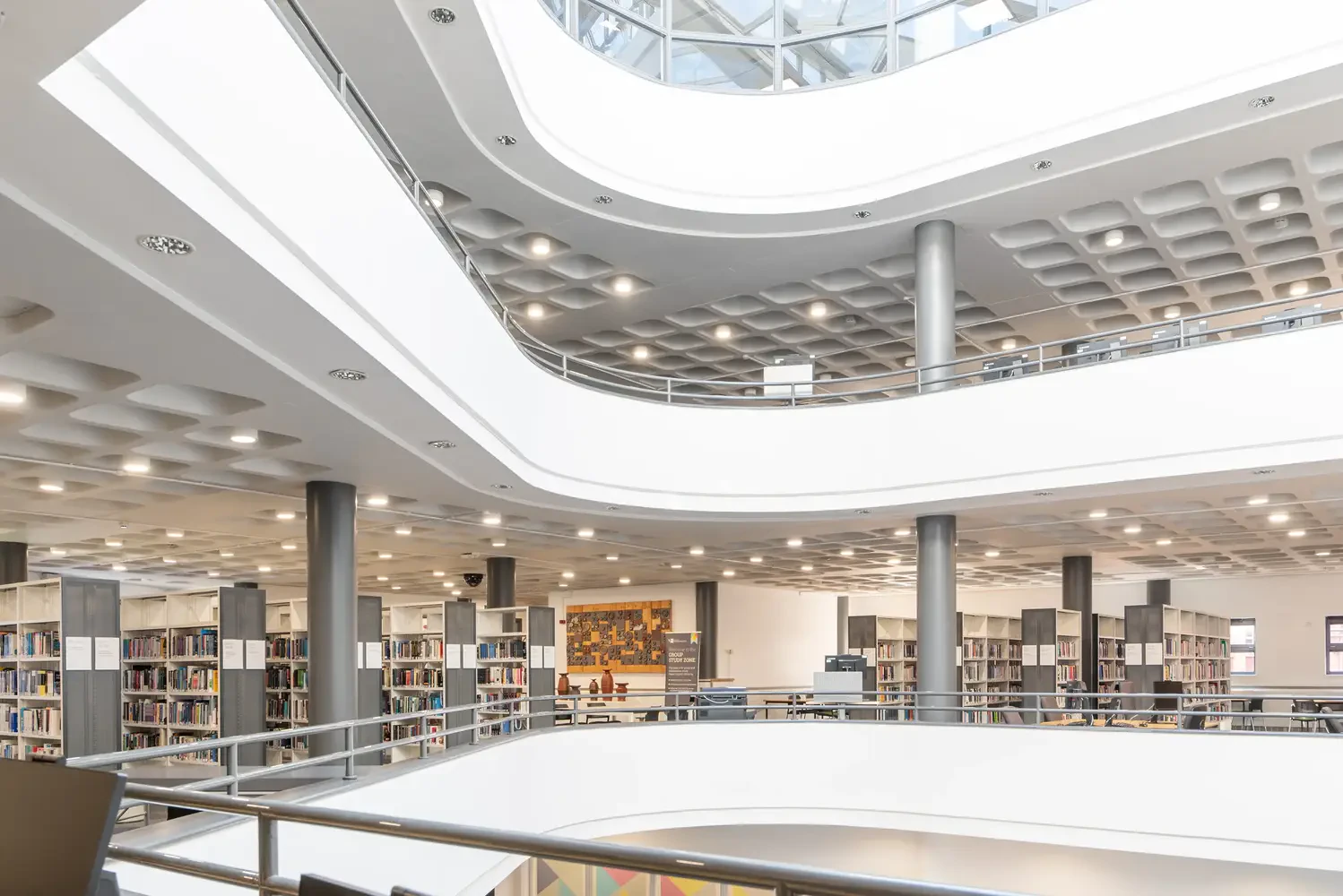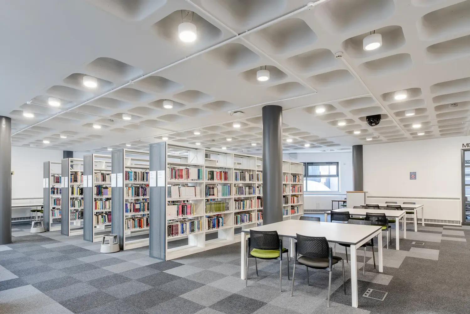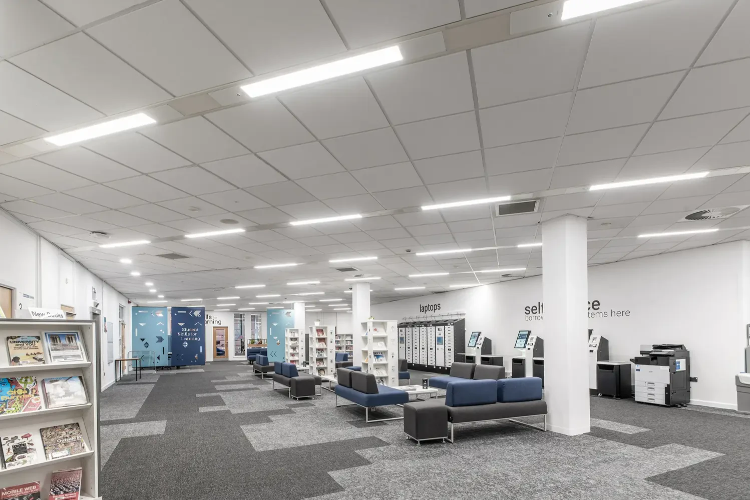 To fulfil this project, Thorlux supplied a mixture of standard SmartScan luminaires and bespoke retrofit LED light engines to fit the existing fixed linear ceiling lights. Over 340 of these purpose-designed retrofit units have been installed across the ground and first floors of the library. This has significantly reduced the amount of waste from the renovation project as the existing luminaire bodies have been kept in use. After removing the old louvres, lamps, and ballasts, engineers clipped the drop-in retrofit devices directly into the existing luminaire chassis.